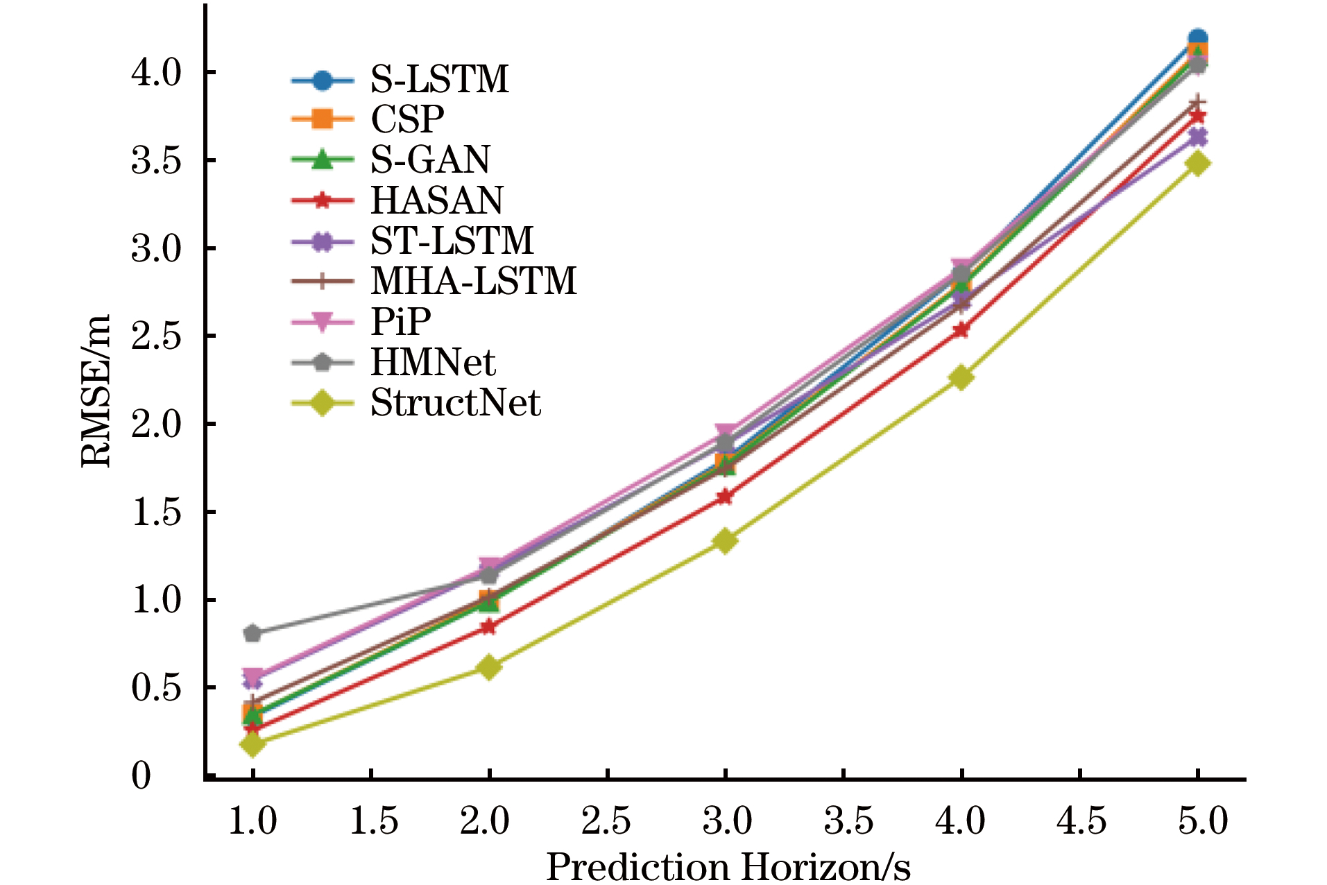 准确地预测周围车辆的未来轨迹对于自动驾驶汽车(ADV)理解复杂动态环境至关重要。然而, 现有的池化策略仅依赖于欧氏坐标系表征下的历史位置特征编码, 难以有效地捕捉车辆的机动意图等隐变量特征。为此, 提出一种机动意图可知的车辆轨迹预测方法。首先, 构建基于极坐标系特征表征和高阶特征编码的池化机制, 以捕捉车辆间的相互依赖关系; 其次, 设计基于高斯概率分布的位置和加速度机动类型判别策略, 以准确地模拟结构化道路场景下车辆的预期机动; 然后, 设计基于随机采样的规划轨迹与历史轨迹耦合编码模块, 在增强模型交互特征捕获性能的同时避免冗余编码; 最后, 基于编码器-解码器框架构建轨迹预测模型StructNet, 并基于真实道路数据集NGSIM验证算法的有效性。多组对比实验和消融实验结果表明, 所提出的车辆轨迹预测模型在5 s时的均方根误差指标低于3.5 m, 相较于基准模型提升15.3%, 预测准确率得到显著提高。