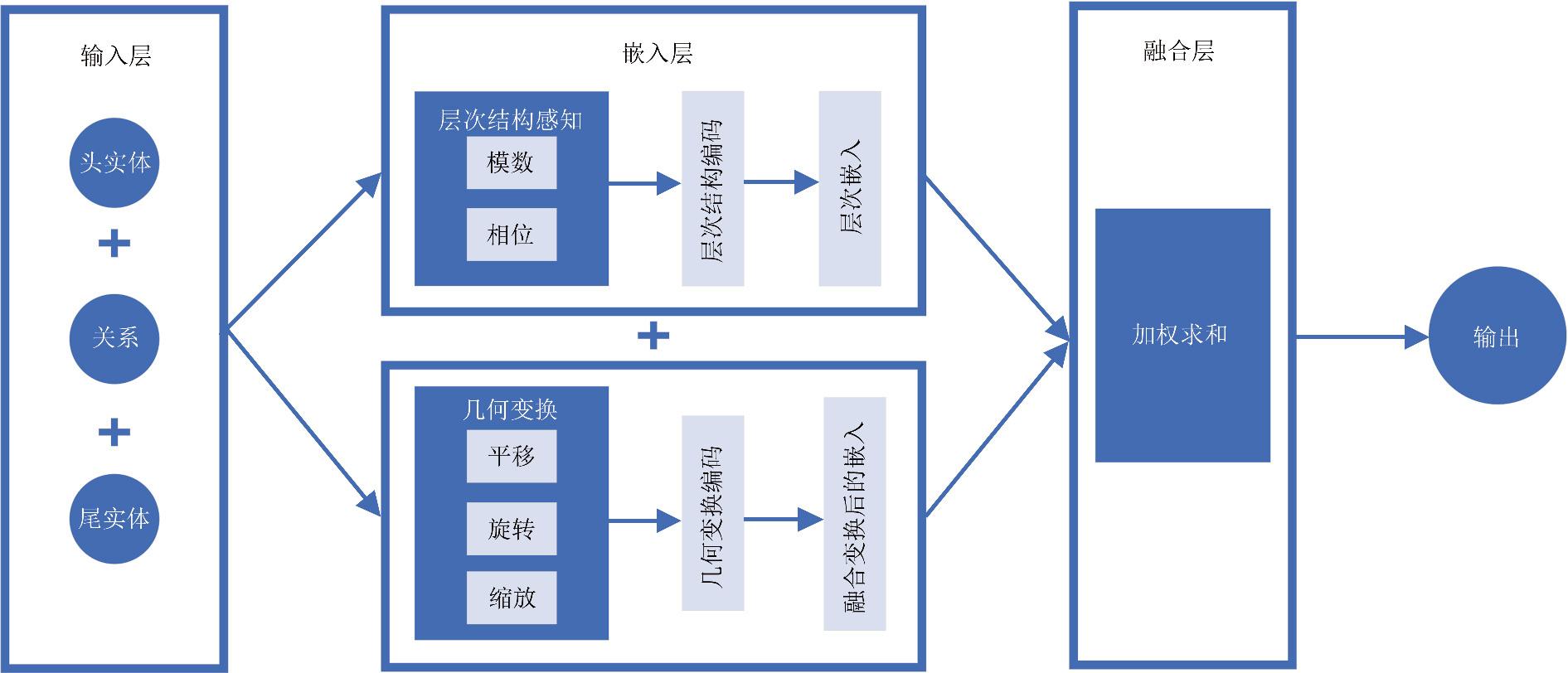 Key words: knowledge graph, knowledge graph embedding, geometric transformation, hierarchical structure perception, link prediction