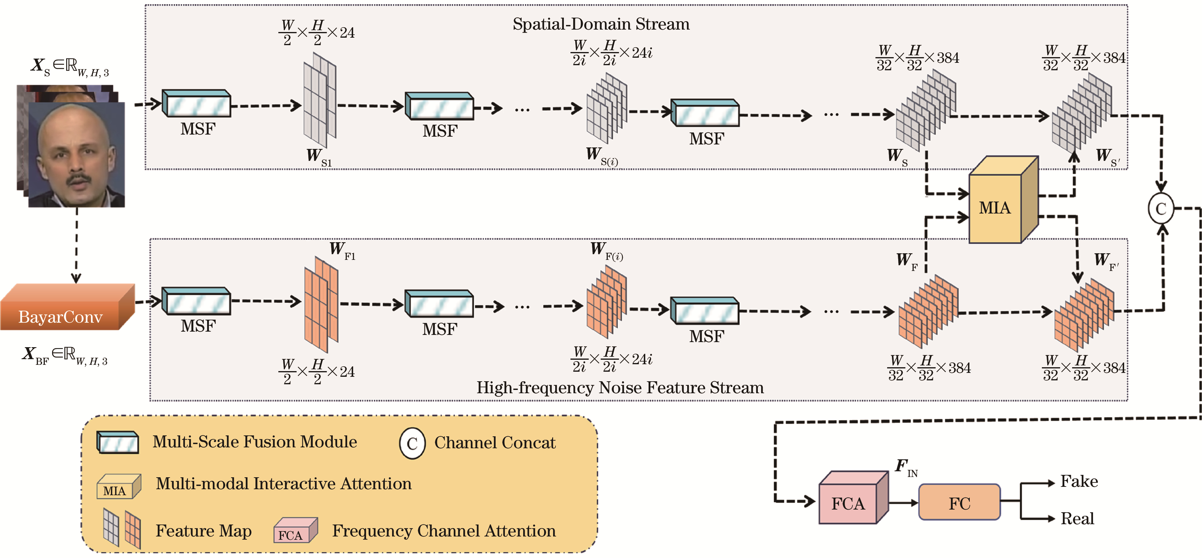 Key words: DeepFake detection, dual-stream network, Multi-Scale Fusion (MSF), Multi-modal Interactive Attention (MIA), high-frequency noise