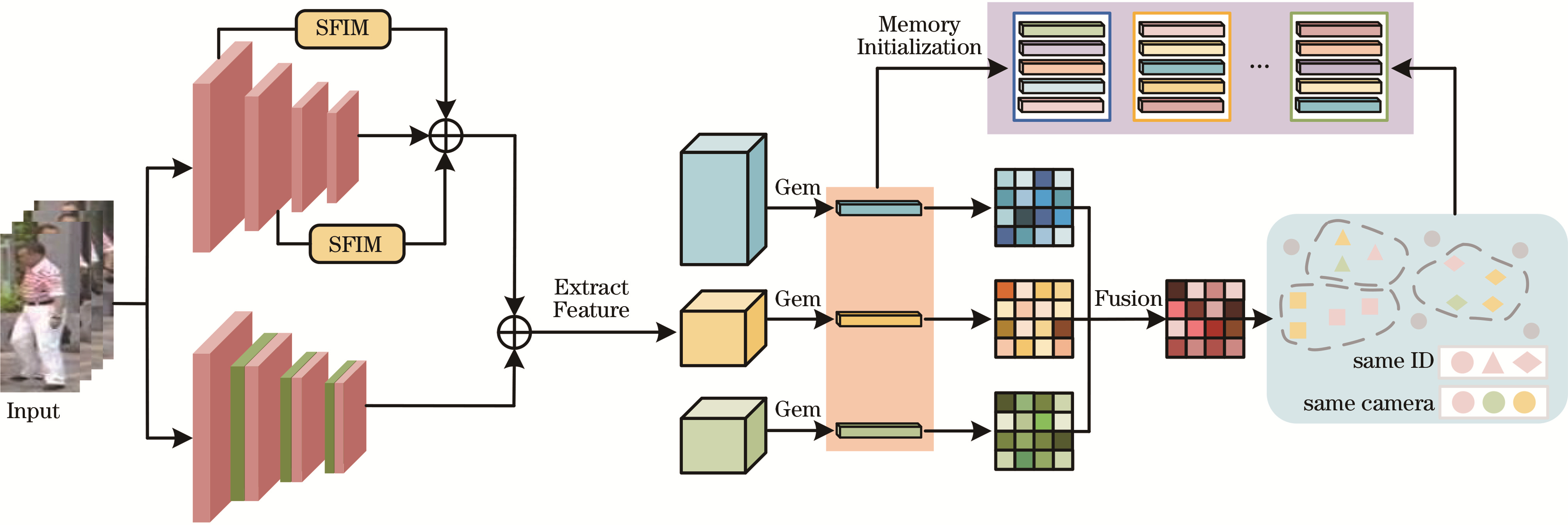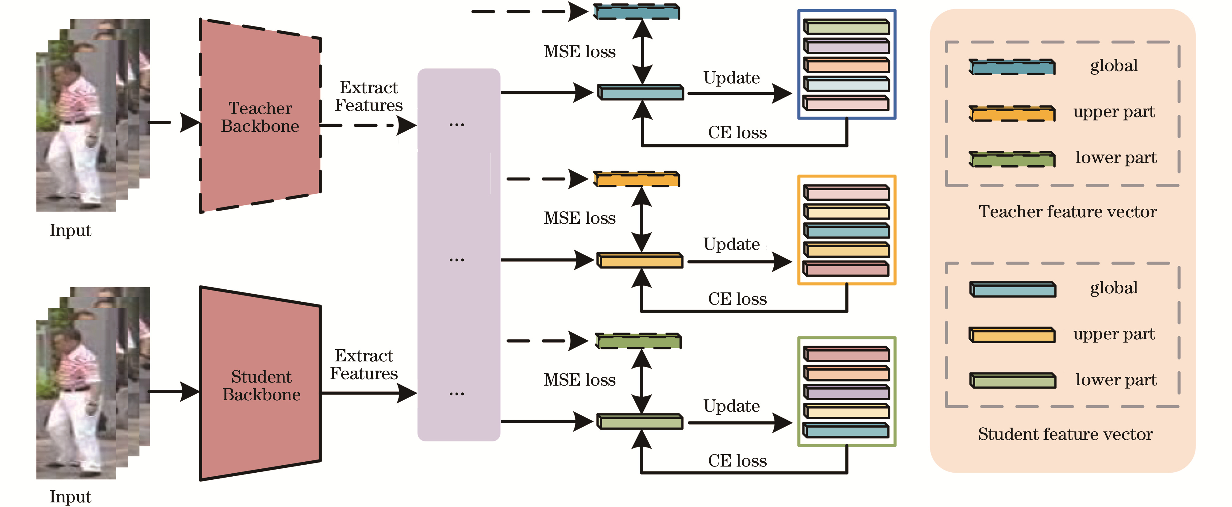 关键词: 无监督行人重识别, 伪标签噪声, 多粒度特征, 师生网络, 空频信息