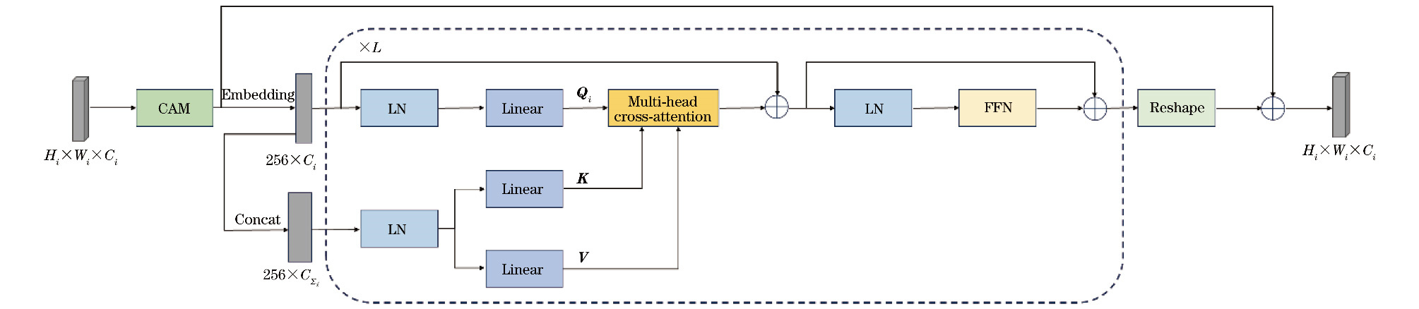 在现有基于U-Net的路面裂缝检测方法中, 编码器各层次特征间的交互未能得到充分考虑, 容易因下采样过程中的信息丢失而导致检测结果不完整或出现漏检。为此, 提出一种基于多层次特征融合的路面裂缝检测方法。首先, 在编码阶段, 提取裂缝在不同层次上的特征, 形成从浅层到深层的裂缝特征表示; 其次, 在跳跃连接部分, 采用基于改进通道交叉Transformer(CCT)的跨层次融合策略, 增强各层次特征间的互补性, 丰富裂缝特征的表达; 最后, 在解码阶段, 通过特征融合模块优化解码器对编码器特征的利用方式, 促进裂缝特征的传递, 提高对裂缝特征的感知能力。为验证所提方法的有效性, 在DeepCrack和CRACK500 2个公开数据集上进行一系列的对比和消融实验, 结果表明, 所提方法的综合表现优于DeepCrack、Swin-UNet等6种方法, 在DeepCrack数据集上的F1值相较DeepCrack、Swin-UNet分别提高了2.30和2.51百分点, 在CRACK500数据集上则分别提高了1.65和1.00百分点。