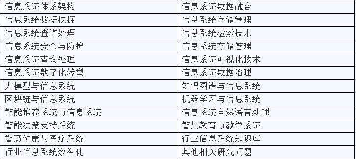 会议征文信息中国信息系统及应用大会将围绕信息系统及相关领域的科学基础理论、关键技术方法与系统、数据要素治理以及创新应用实践等方面征集会议论文。