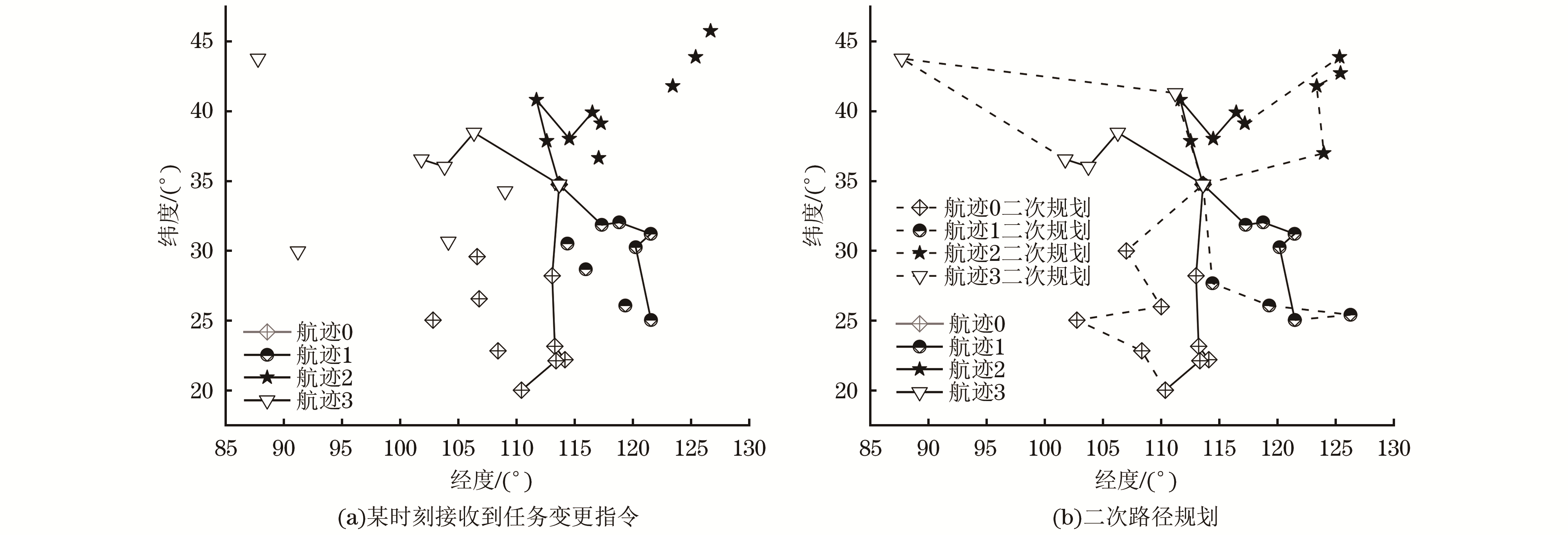 近年来, 随着无人机(UAV)技术的发展及其在军事、物流、农业等领域的广泛应用, 无人机群航迹规划问题受到了广泛关注。传统的优化算法, 如模拟退火、遗传算法和粒子群优化算法等虽然在某些情况下能够取得不错的效果, 但在面对更大规模、更复杂的无人机群任务时, 容易遇到计算效率低、陷入局部最优解等问题。量子退火算法凭借其独特的量子隧穿优势可以有效避免陷入局部最优解。提出基于量子退火的无人机群航迹规划算法, 将航迹规划问题转换成二次无约束二值优化(QUBO)问题, 通过两阶段处理策略, 利用量子退火方法对任务点聚类并对每一类别的航迹进行模拟求解, 有效降低了时间复杂度。研究结果表明量子退火相较于模拟退火有更大的概率求解出更优的航程, 因此量子退火具有更好地跳出局部最优解的能力。此外针对无人机群在执行任务时可能面临的4种常见的应用场景, 设计了相应的动态任务分配方案并对量子退火的目标函数和约束进行修改, 研究结果表明, 该无人机群航迹规划算法可以很好地应对常见的应用场景, 保证无人机群能够灵活应对并协同高效完成任务。