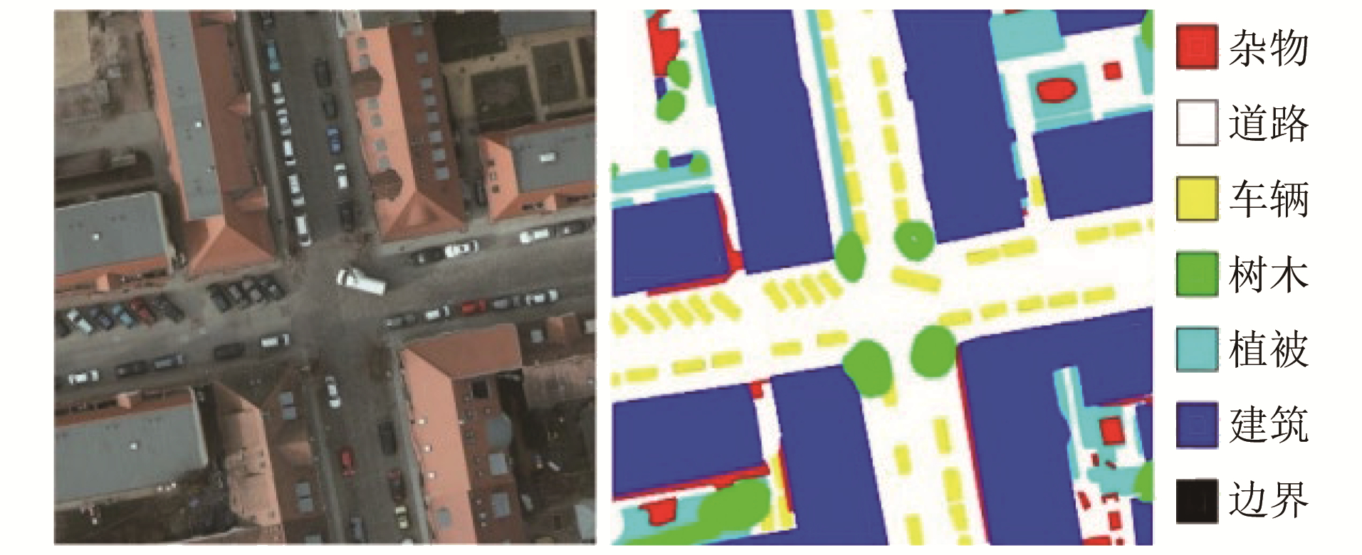 遥感图像语义分割技术在资源管理、自然灾害管理、环境监测和保护等领域具有重要应用价值, 然而不同的遥感图像数据集往往存在大量的异物同谱和同物异谱等现象, 极大地降低了深度学习模型的泛化性能, 同时遥感图像语义分割算法中存在跨域预测性能下降的问题。为了解决上述问题, 从神经网络模型架构和域自适应策略两个方面进行优化。首先, 提出了基于层级多头自注意力机制与多尺度特征融合的TransConv网络, 通过滑动窗口切块、多层自注意力模块和轻量前馈神经网络, 有效提升特征提取和融合的能力, 从而增强模型的泛化性能。其次, 提出一种基于自训练的域自适应技术, 该技术通过优化图像输入、模型参数和学习过程, 将带标注的源域知识成功迁移至未标注的目标域, 大幅提高了目标域的分割性能。实验结果表明, 改进后的TransConv网络不仅在泛化性能上显著优于其他算法, 基于自训练的域自适应技术也在域自适应任务中表现出色, 提升了遥感图像语义分割的准确性和泛化能力, 减少了错误伪标签的影响和解决了类不平衡问题, 为实际应用提供了更为可靠的技术支持。