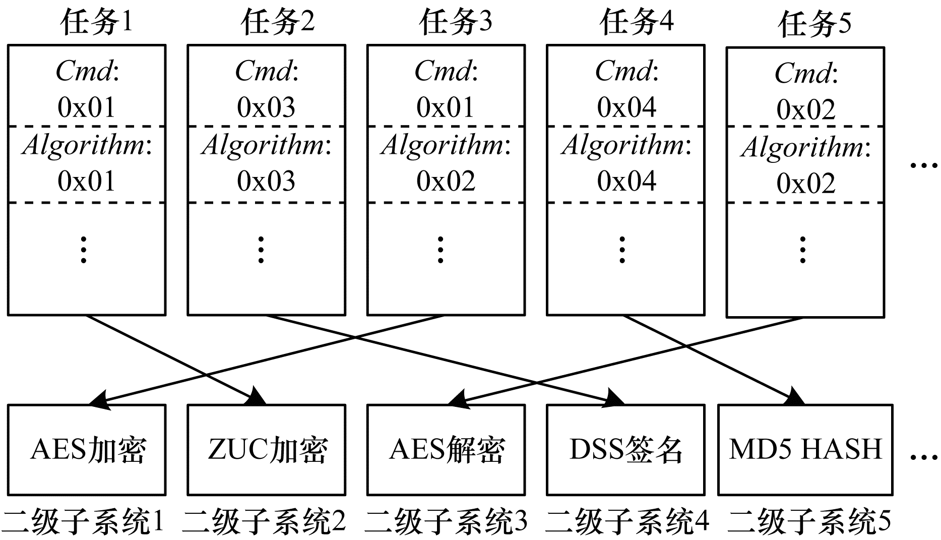 3) 处理命令(Cmd):用户服务请求中的常见密码操作, 包括加密、解密、签名、HASH等。