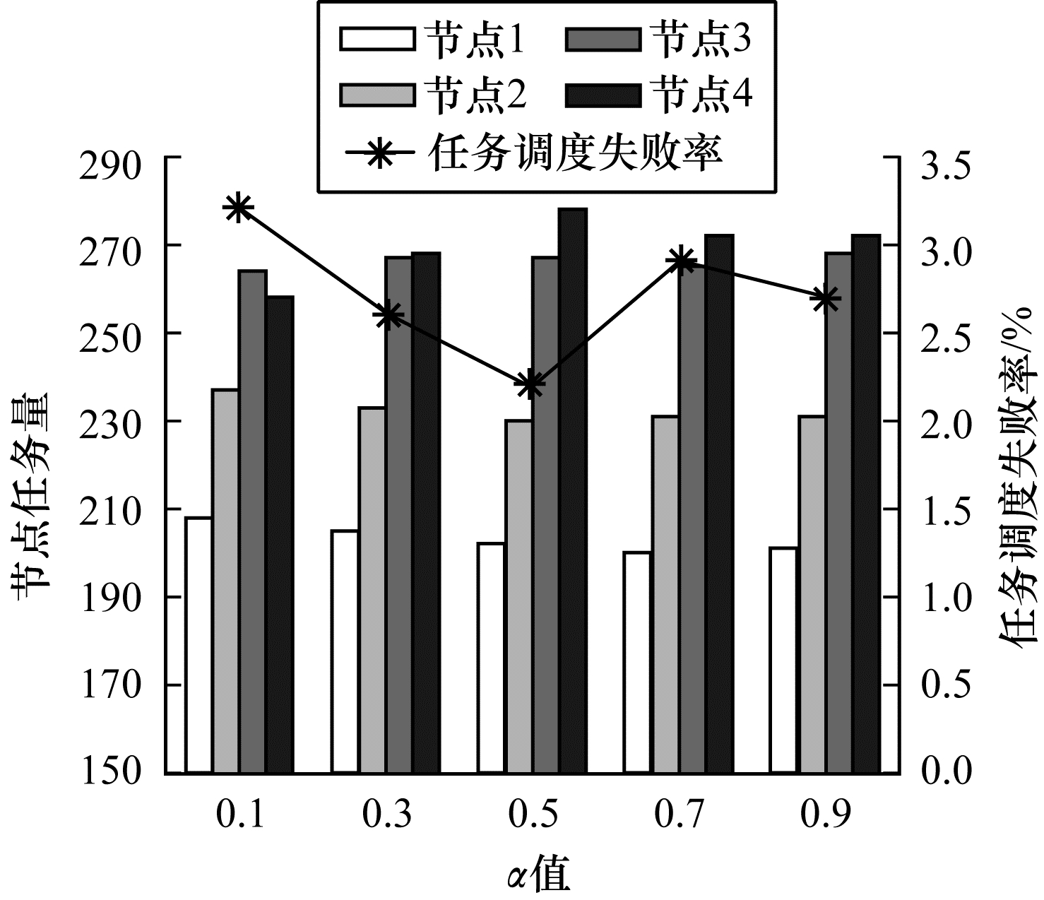 | 图 4 加权系数对任务调度失败率的影响 | |
