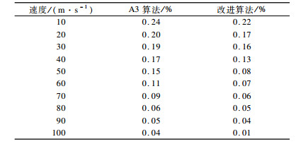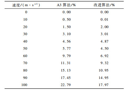 由表 5可知, 当列车速度为20 m/s~100 m/s时, 优化后算法的掉话率分别为2.00%、3.01%、4.87%、4.50%、6.92%、9.32%、10.95%、14.95%、17.97%, 低于A3算法的掉话率, 优化后的算法更稳定。