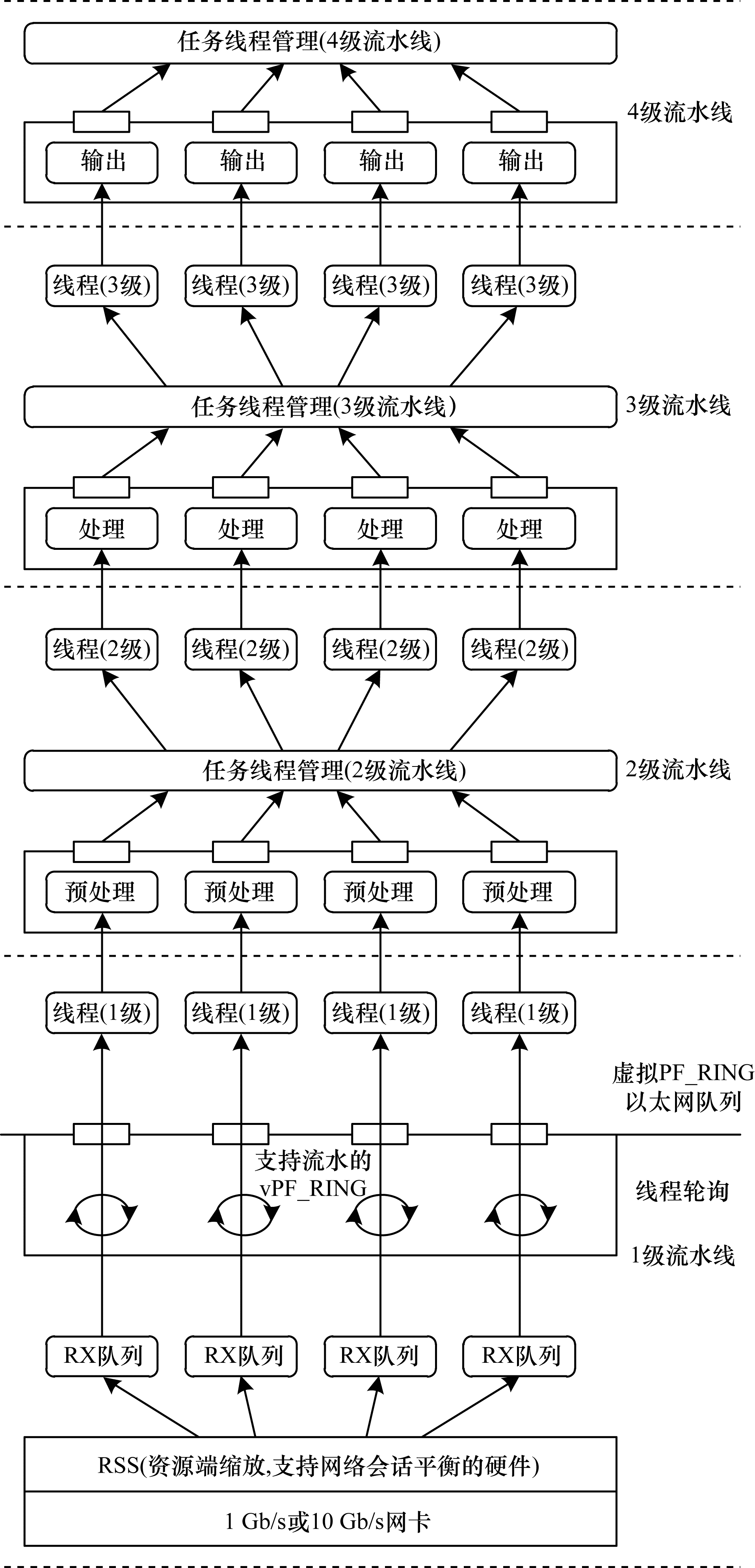 为进一步提升云系统的处理能力, 本文提出4级流水化的PF_RING处理方式, 如图 2所示。
