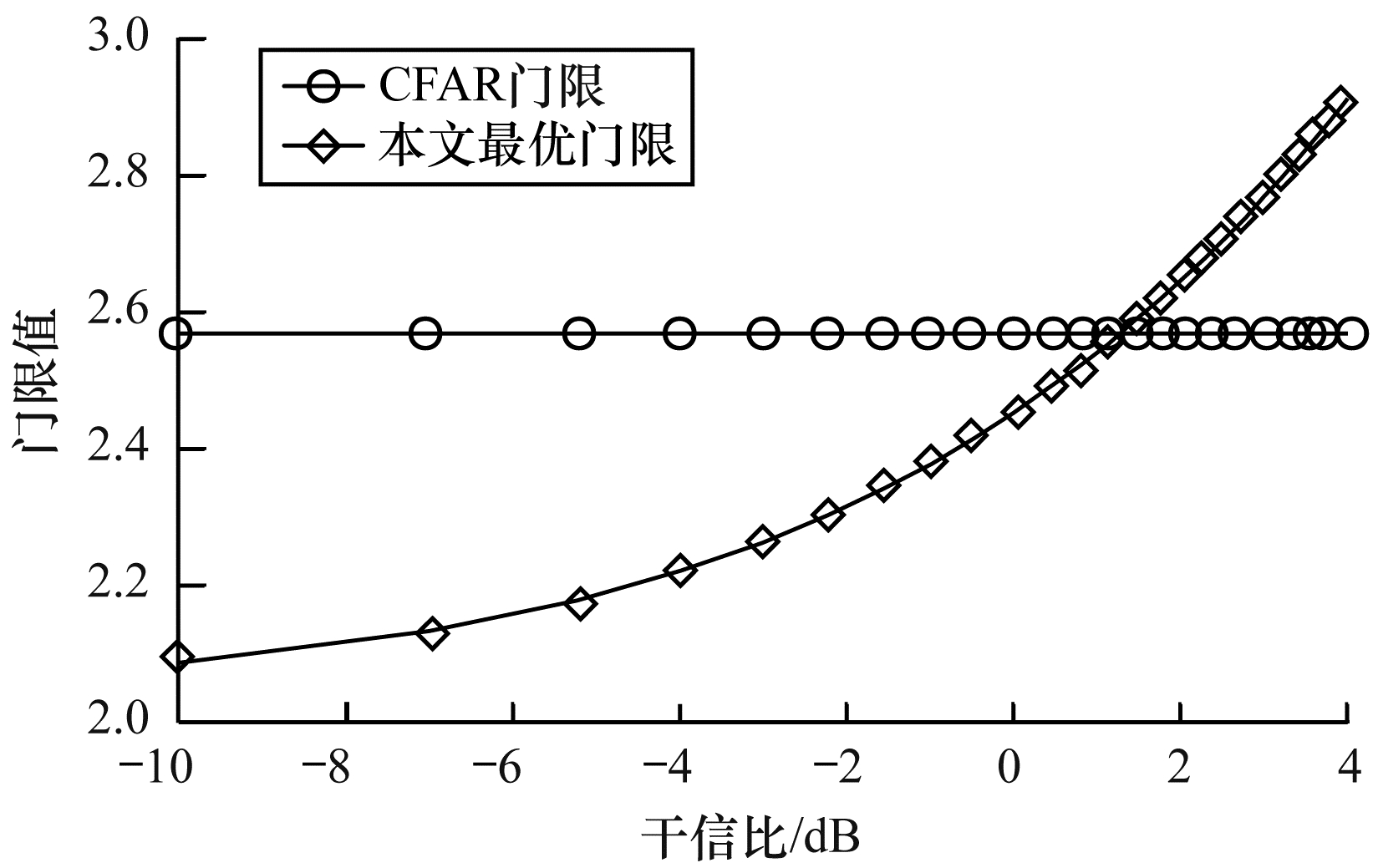 | 图 5 本文最优门限与CFAR门限对比 | |