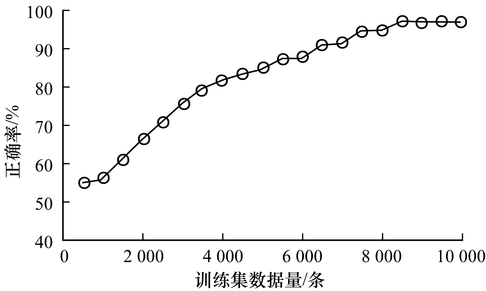 | 图 10 训练集数据量与正确率的关系曲线 | |