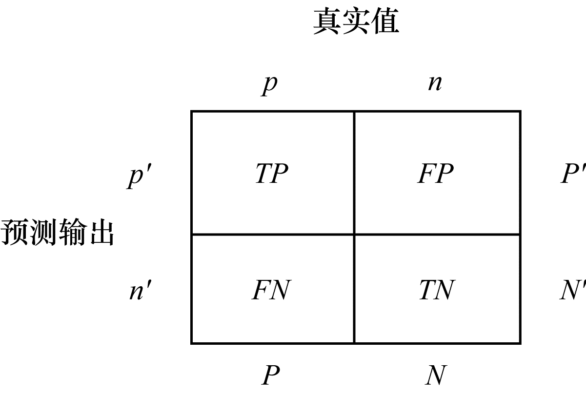在机器学习中有一个普遍适用的工具混淆矩阵, 可以帮助了解分类过程中的错误及评估分类器的好坏, 本文使用的混淆矩阵如图 6所示。其中, 真阳性率TP为将正常数据正确判断为正常类型, 假阳性率FP为将正常数据错误判断为攻击类型, 真阴性率TN为将攻击数据正确判断为攻击类型, 假阴性率FN为将攻击数据错误判断为正常类型。