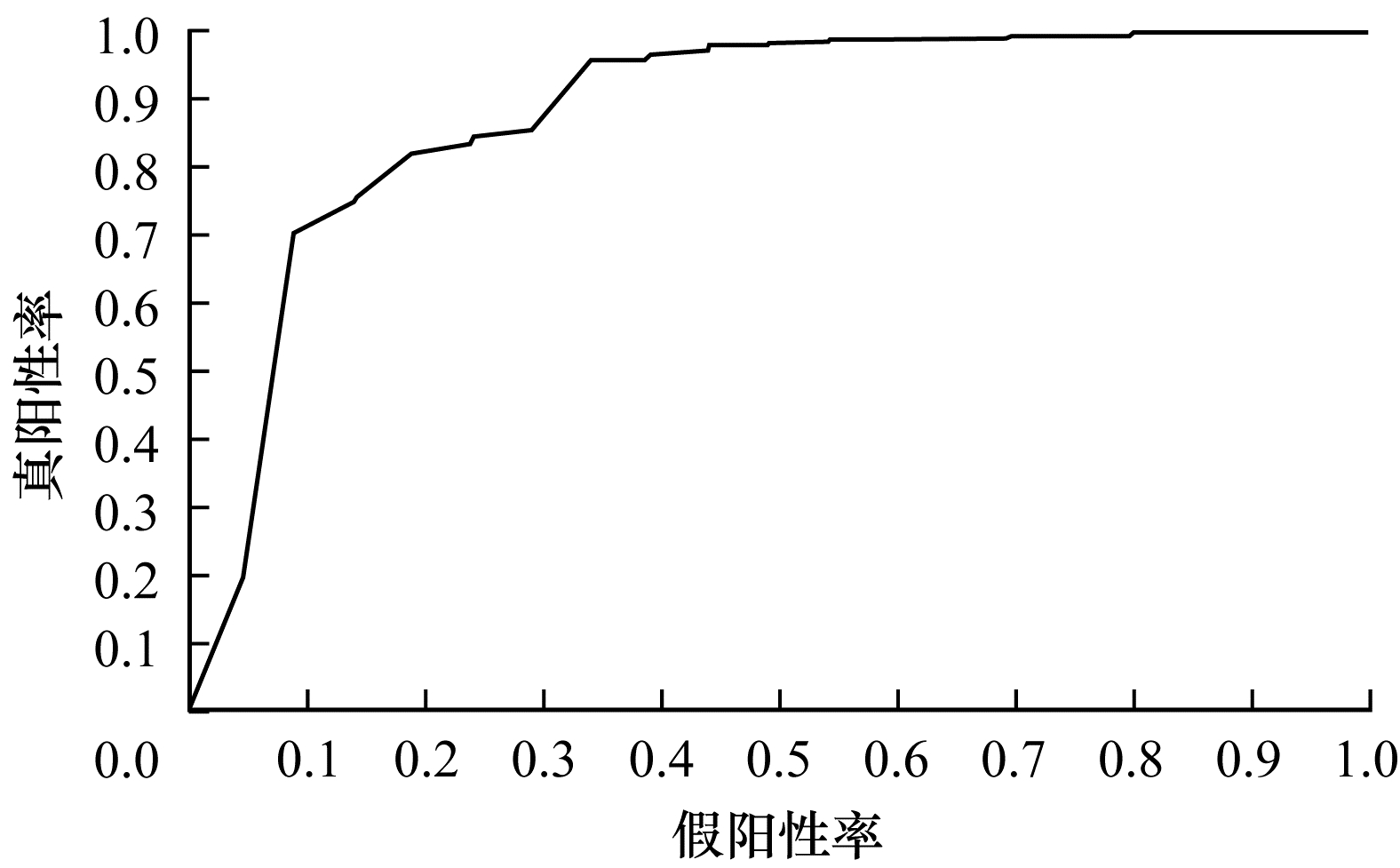 接受者操作特征(Receiver Operating Characteristic, ROC)曲线是一种对于灵敏度进行描述的功能图像, ROC曲线以真阳率TPR为纵坐标, 以假阳率FPR为横坐标, 通过描述这两个特征的变化情况来评价分类器的好坏, 在理想的情况下, 最佳的分类器ROC应该尽可能处于左上角, 这就意味着分类器在假阳率很低的同时获得了很高的真阳率。对不同的ROC曲线进行比较的另一个指标是曲线下的面积(Area Under the Curve, AUC), AUC给出的是分类器的平均性能值, 一个完美的分类器的AUC为无限趋近于1。ROC曲线和AUC常被用来评价一个分类器的优劣。