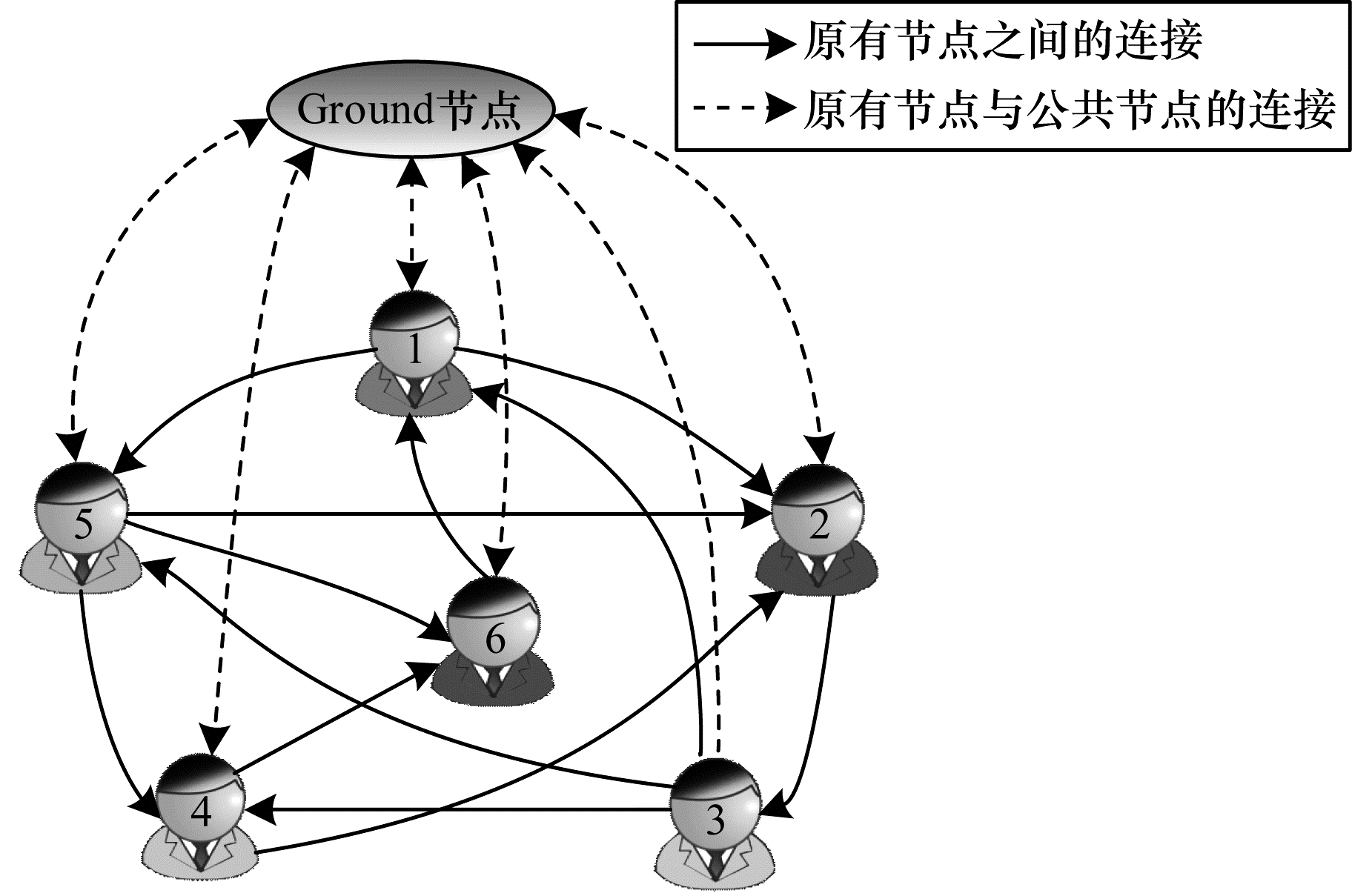 1 相关研究 1.1 LeaderRank算法LeaderRank算法的思想是在已知有向网络G(N, M)中添加一个公共节点, 得到具有N+1个节点的有向网络G(N+1, M+2N)。由于公共节点与网络中的其他节点存在双向连接, 因此G构成了一个强连通图, 且图中所有节点的出度和入度均大于0, 避免在复杂网络中出现孤立节点, 以保证算法的收敛性。LeaderRank算法的网络结构如图 1所示。LR值的计算公式如下: