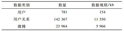 在得到的数据集中, 本文选取其中70%的数据作为训练集, 30%的数据作为测试集。在训练集和测试集的基础上构造本文所需数据集。选取用户的关注关系及用户的ID信息构造微博用户网络, 便于WTLR算法进行迭代计算。利用用户所发表的微博帖子构造帖子数据集, 并使用GloVe模型生成短文本词向量。