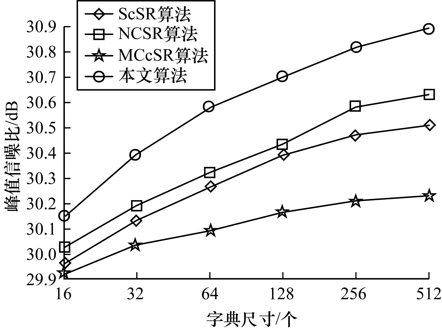 | 图 4 字典尺寸对重建图像PSNR的影响 | |