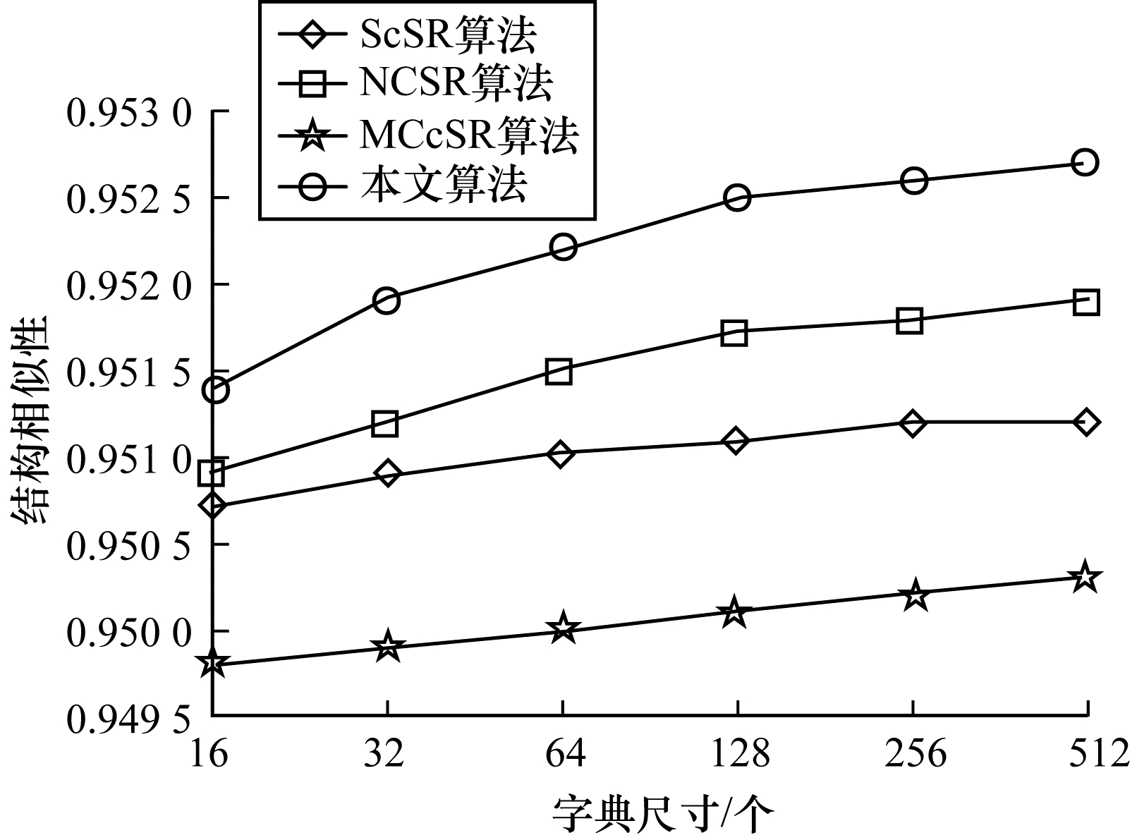 | 图 5 字典尺寸对重建图像SSIM的影响 | |