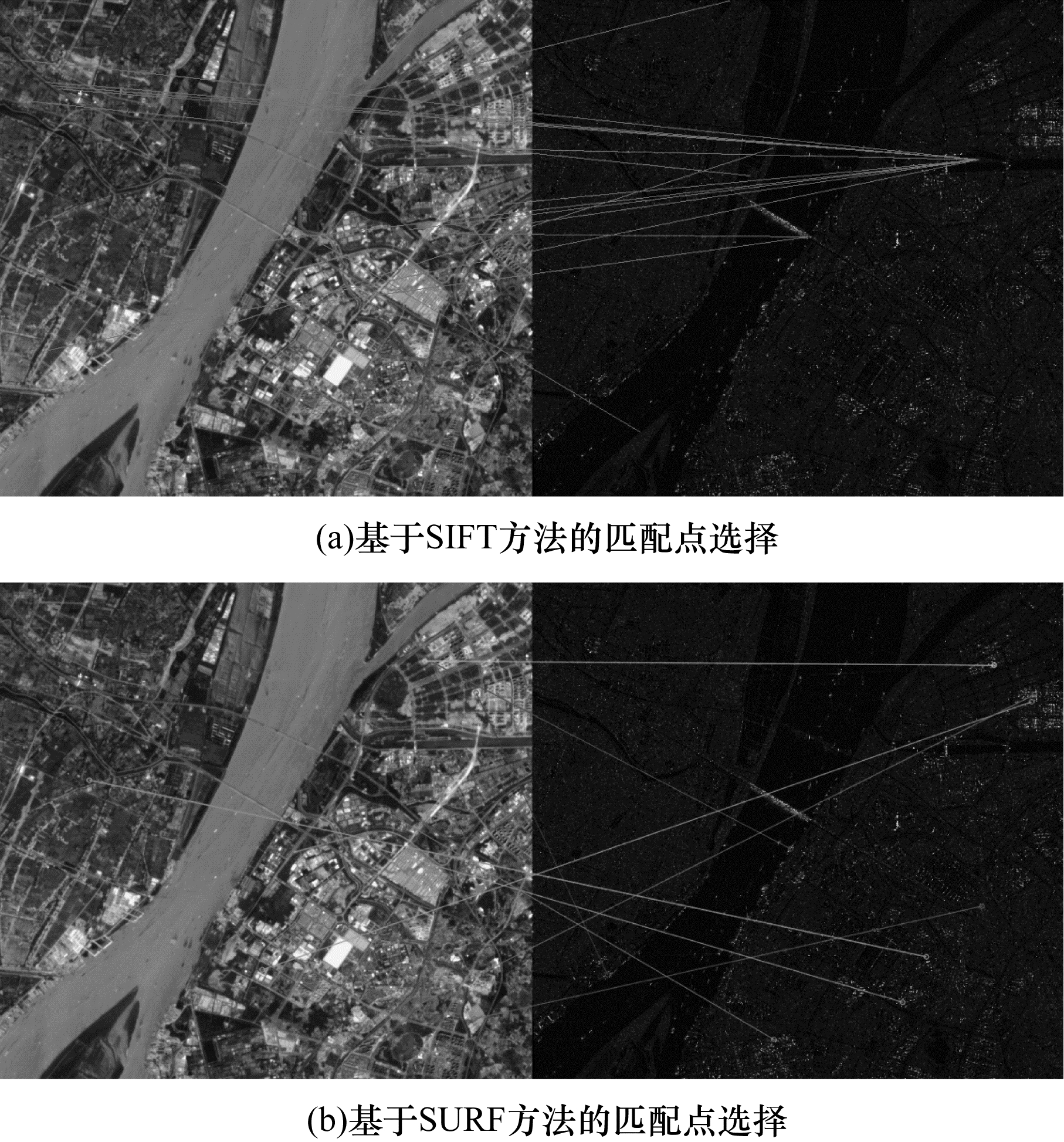 | 图 10 可见光和SAR图像匹配点选择结果 | |