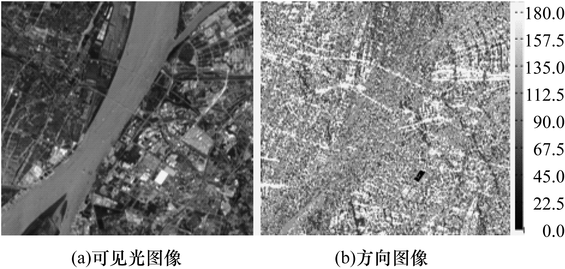 文献[12]基于“结构和形状特征在不同模态图像中都会保留”这一假设, 采用结构特征进行多模态图像配准。方向相位一致直方图(Histogram of Orientated Phase Congruency, HOPC)可用于描述结构特征, 并已应用于遥感图像配准。但是, 使用HOPC作为Harris角点的描述符不能详细地表示其邻域角点强度的变化关系。与相位相比, 角点[13]特征的计算复杂度相对较低, 且对图像光照、对比度以及旋转更具鲁棒性。因此, 本文提出一种改进的方向Harris角点直方图(HIOHC)结构特征来进行SAR图像和可见光图像配准。从每一副图像中独立地提取HIOHC描述符, 在此基础上, 使用夹角余弦作为相似度量(HIOHCac)匹配不同的角点, 最后通过选取的匹配点进行图像配准。