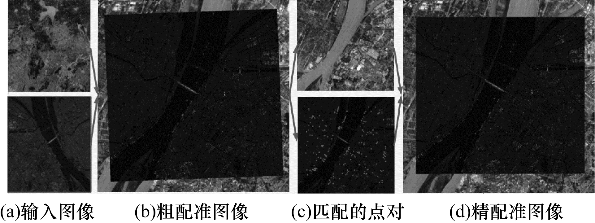 1.5 图像配准本文通过上述步骤获取图像的点特征及其特征描述符进行图像配准, 具体步骤如下:
