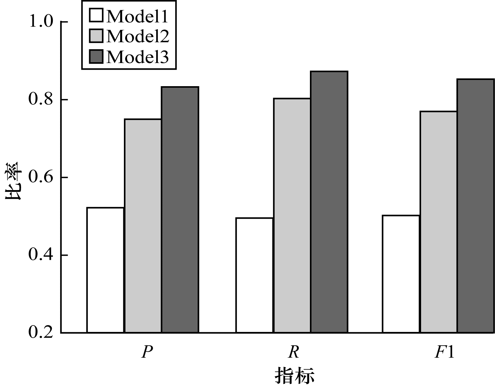 | 图 7 3种模型的准确率、召回率和F1值对比 | |