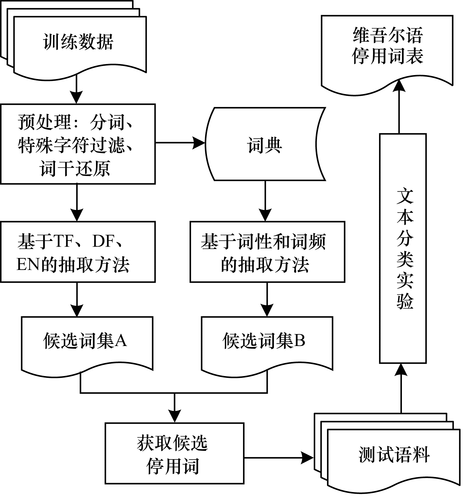 | 图 1 维吾尔语停用词抽取方法流程 | |