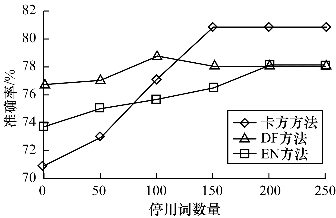 在停用词抽取方面, TF、DF、EN等方法各有优缺点。因此, 需要通过实验来验证这些统计方法在停用词选取方面的合理性。