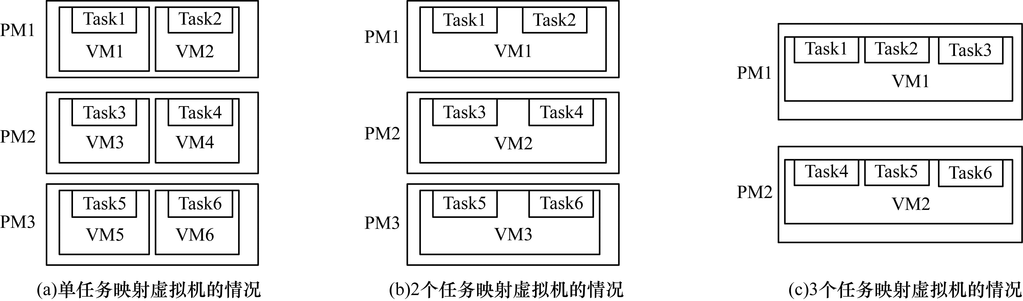 (1) 如果一个新任务到达, 它将被映射到一个虚拟机上。在这种的情况下, 它必须映射到一个存在的虚拟机, 或者系统再重新产生一个虚拟机。