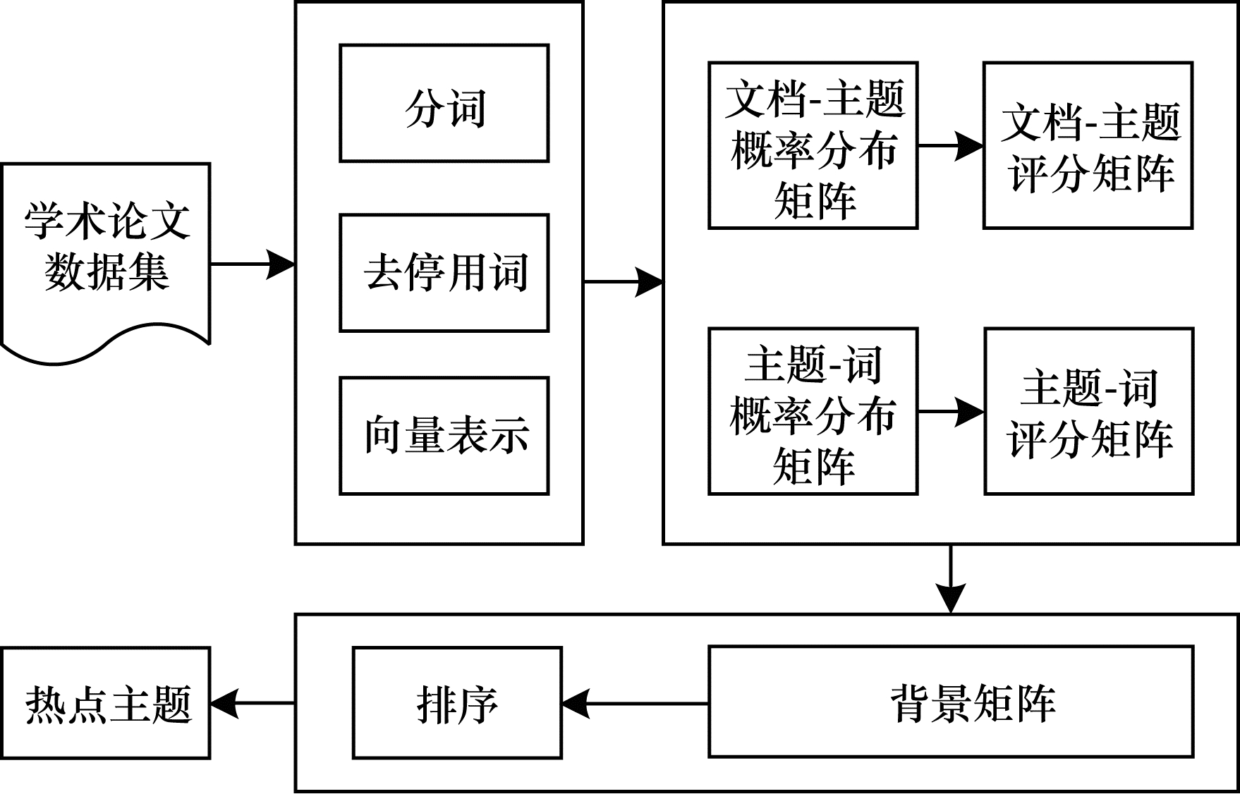 图 1 学术论文研究热点挖掘模型的整体框架 |