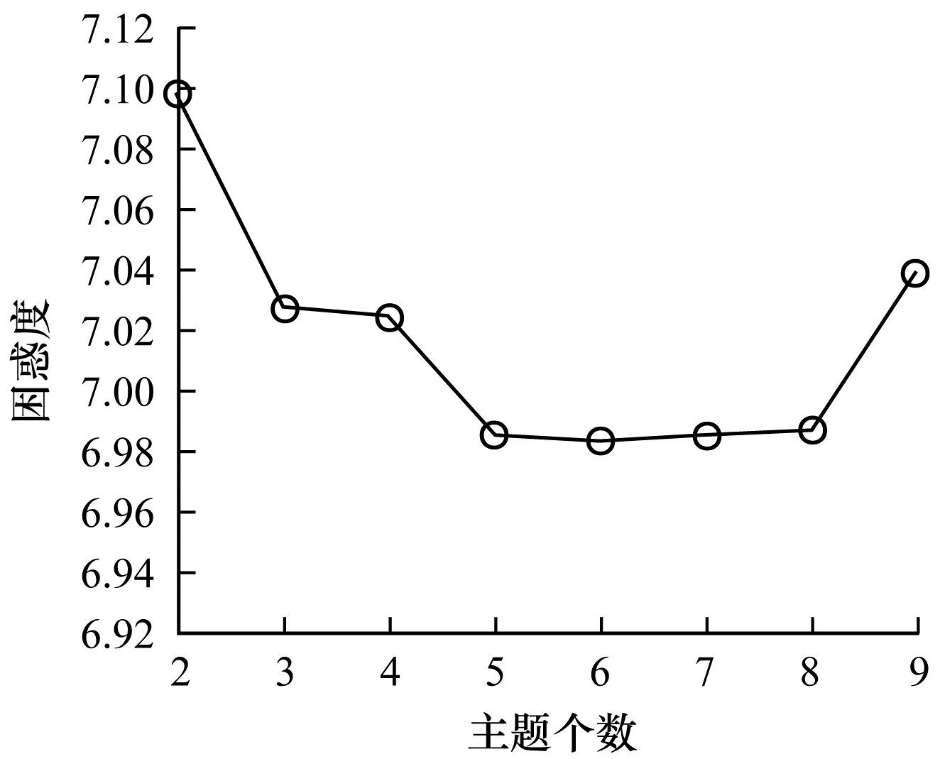 图 3 LDA在不同主题个数时的困惑度 |