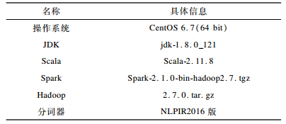 实验环境是Spark集群, 包括1个Master节点和4个Worker节点, 采用分布式文件系统HDFS存储数据, 具体信息如表 1所示。