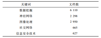 近年来, 随着深度学习和机器学习的兴起, 许多学者对论文分析和主题挖掘进行了大量研究。文献[4]提出一种基于Doc2Vec与HMM算法的文本内容特征因子计算模型, 研究学术论文主题。文献[5]通过LDA模型与Word2Vec算法获取科技文献的主题词概率, 并构建词义相关的T-WV矩阵识别主题, 优化LDA模型。文献[6]通过潜在狄利克雷分布主题模型挖掘频繁出现的主题集合, 进行学术论文推荐。文献[7]通过主题模型挖掘企业新闻文本及情感分析。文献[8]提出MB-LDA模型并挖掘微博主题与人物间的关系。