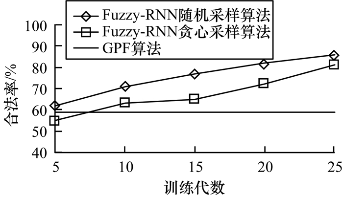将GPF和2种采样方式的Fuzzy-RNN进行对比, 实验结果如图 6~图 9所示。水平线代表GPF在该仿真软件上的表现, 由于GPF不涉及学习过程, 因此没有变化趋势。
