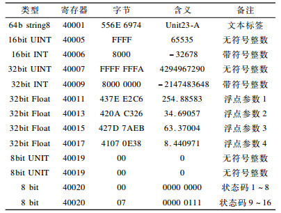 Modbus Function Code的正向指令范围是从0到127, 根据Modbus通用标准的定义, 其只取以下范围值:1~64, 73~99, 111~127, 其他值用作私有协议备用, 负向响应范围从128~255。Function Code后面跟随Parameters, 将请求参数传递给从站。例如, 名为read holding register的Function Code之后要跟随特定保持寄存器的地址(编号)。图 3给出该类Function Code的一个响应, 表示读取特定地址的保持寄存器的返回结果。