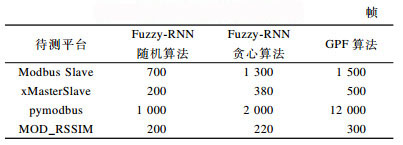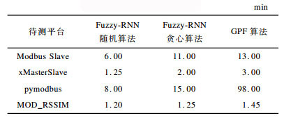 由表 2和表 3可知, 使用随机采样的Fuzzy-RNN算法使得Modbus Slave、xMasterSlave、pymodbus的挖掘时间缩短了50%以上。而对于MOD_RSSIM, 由于其可支持的Function Code较多且仿真边界值设定范围较广, 因此RNN阶段所能学习到的条件概率模型并不强, 其时间增益主要来自算法1所描述的反随机策略。使用贪心采样的Fuzzy-RNN算法, 其所带来的时间增益则较差。但总体来看, Fuzzy-RNN算法在绝大部分Modbus仿真系统中都实现了模糊效率的提高。