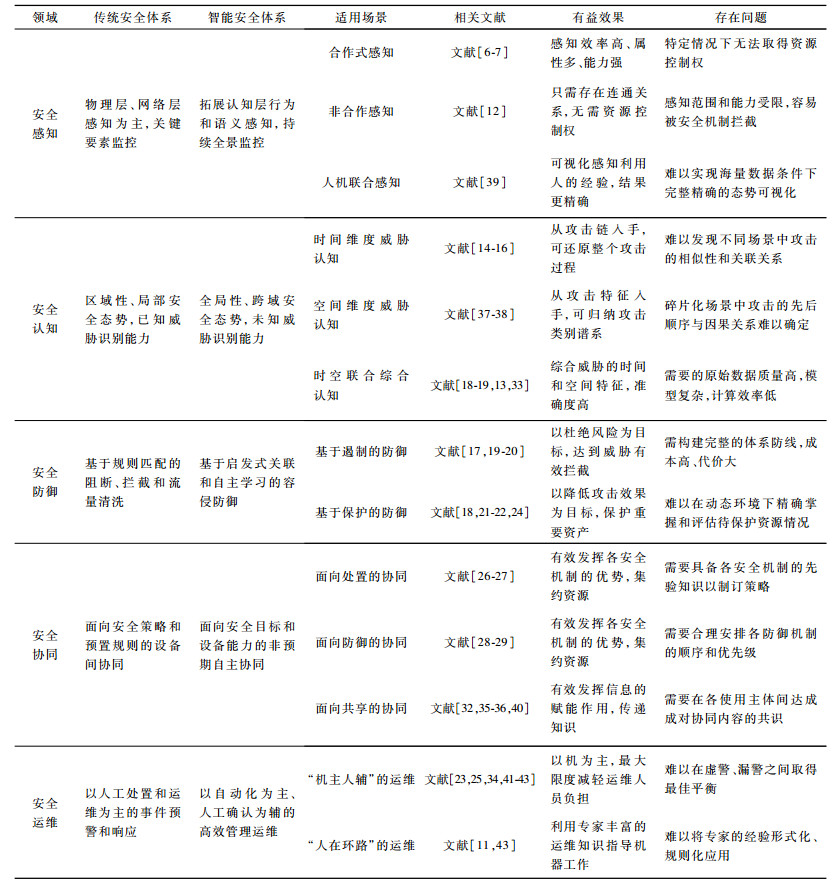 4 效能对比与热点趋势在对人工智能驱动的关键信息基础设施安全防御要点和防御保障等领域研究基础上, 对传统安全防御效能和智能化安全防御效能在各个维度进行比较, 结果如表 1所示。