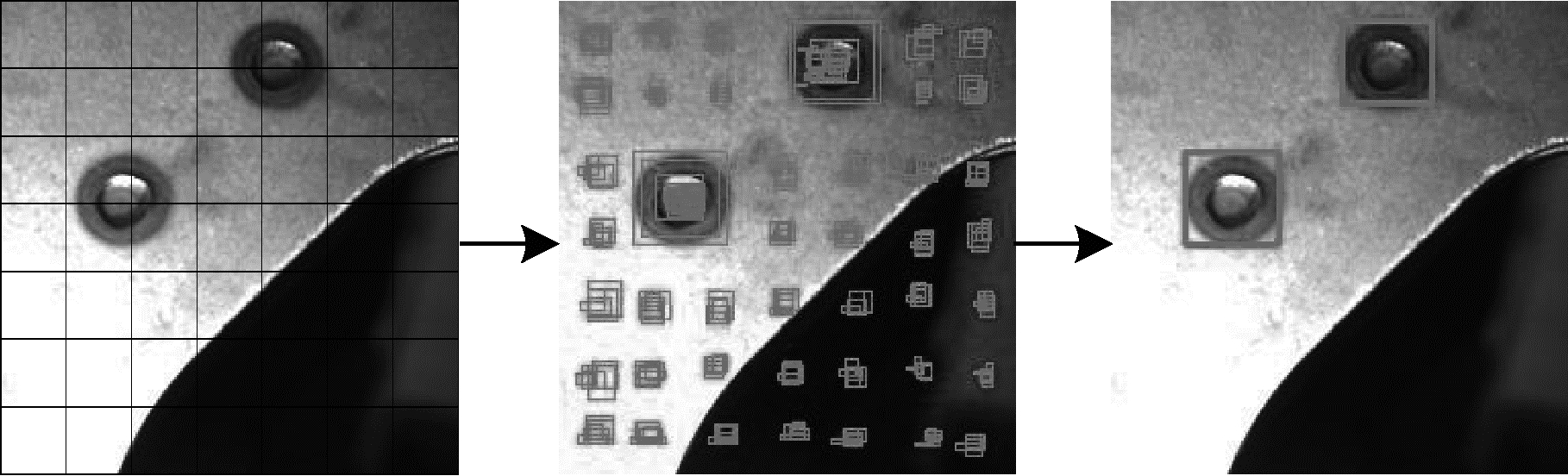 1 YOLOv2目标检测算法YOLOv2目标检测算法是一种单阶段目标检测方法, 其检测流程如图 1所示。本文设置输入图片大小为224×224, 将图片划分为7×7的网格, 每个网格预测5个预测框, 然后去掉置信较低的预测框, 最后经过非极大值抑制[24]得到最后的预测结果。