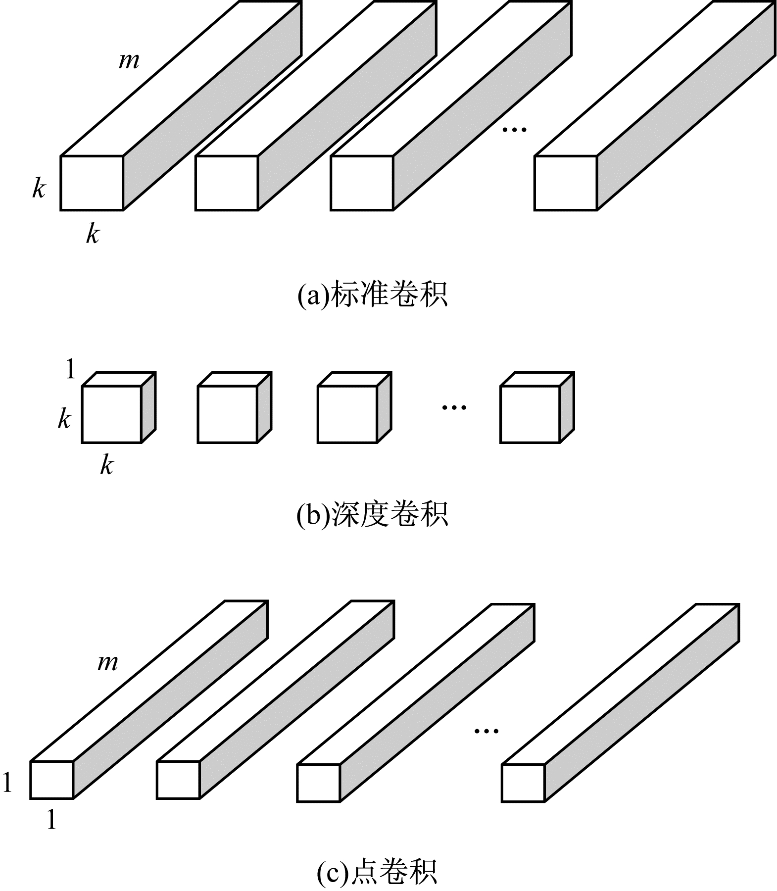 | 图 5 标准卷积、深度卷积与点卷积结构 Fig. 5 Structure of standard convolution, depth convolution and point convolution | |