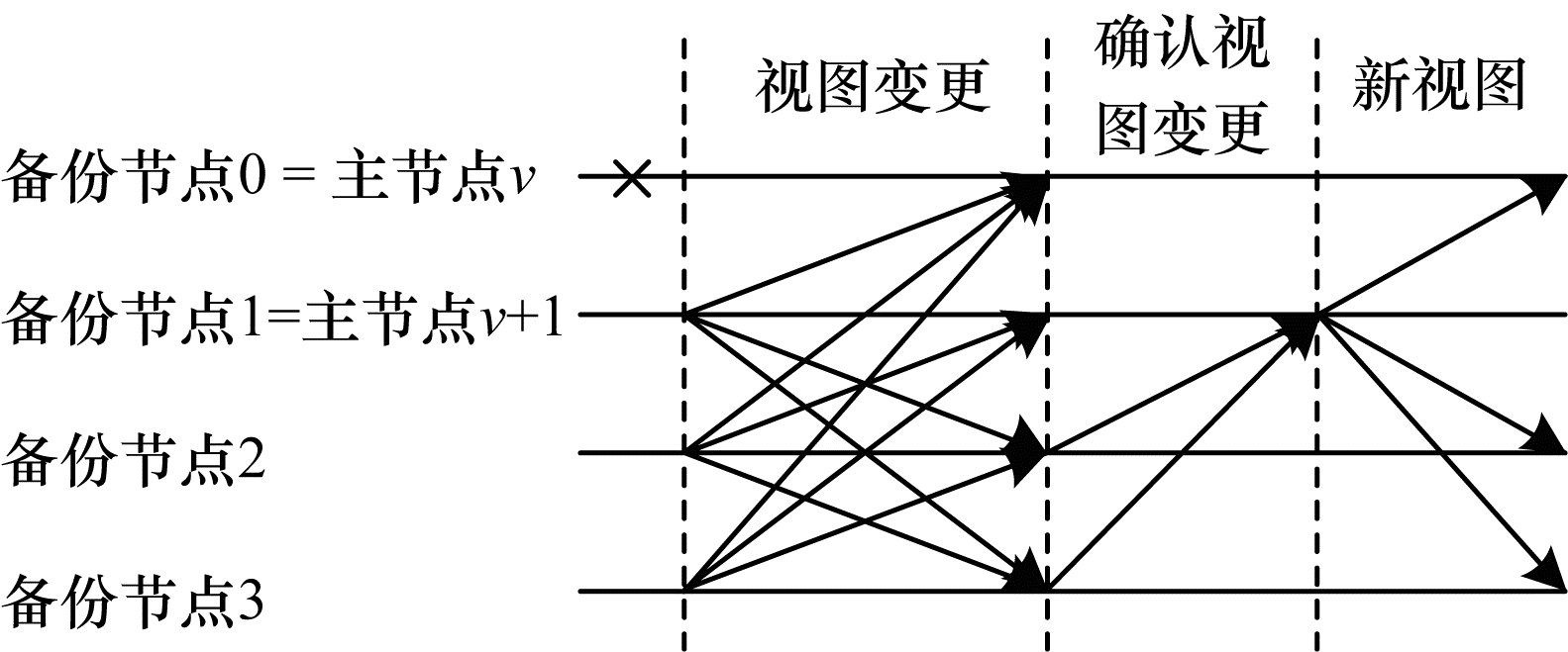 | 图 2 PBFT视图变更流程 Fig. 2 Procedure of PBFT view change | |