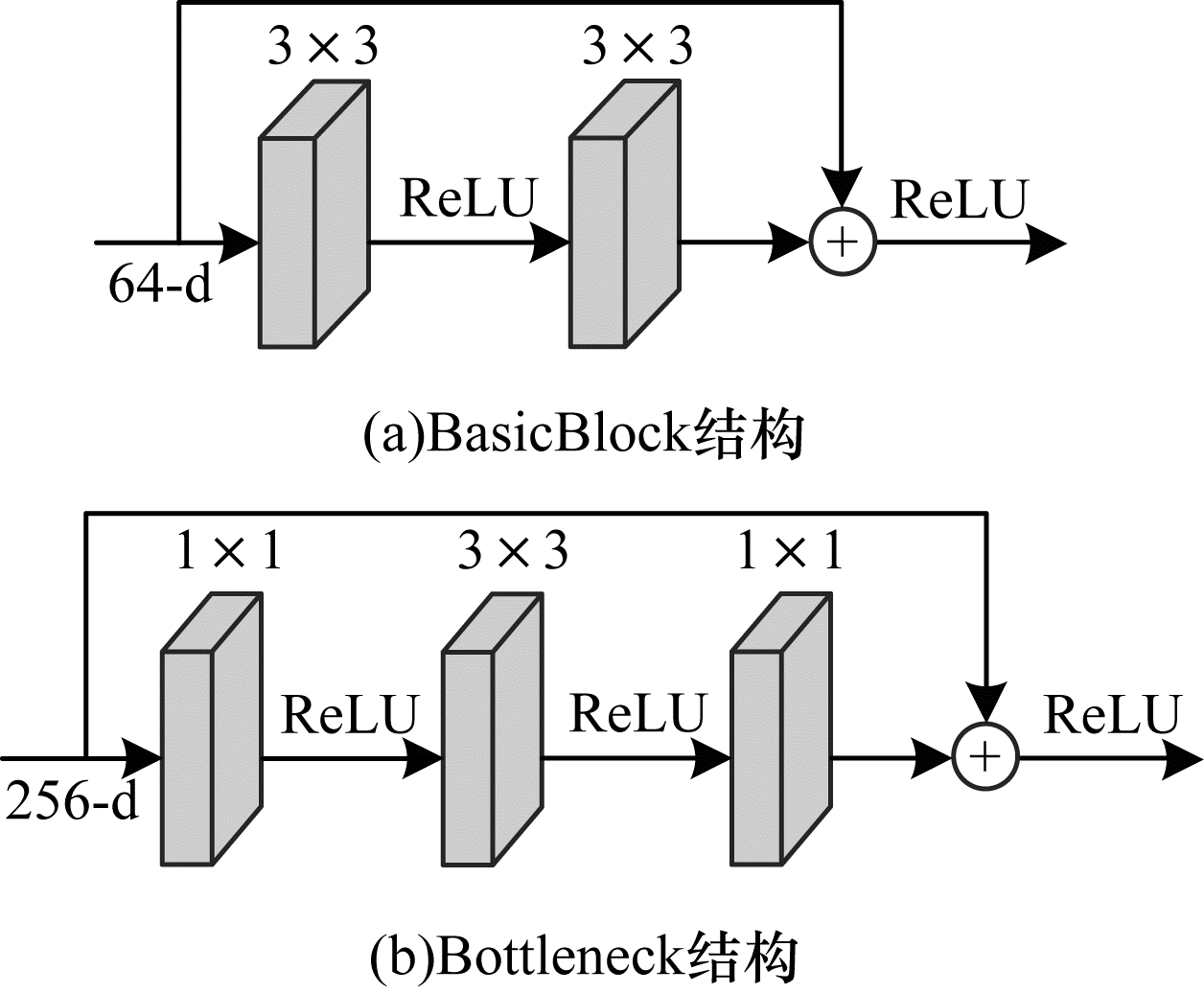图 1 残差块的2种结构形式 Fig. 1 Two structural forms of residuals block |