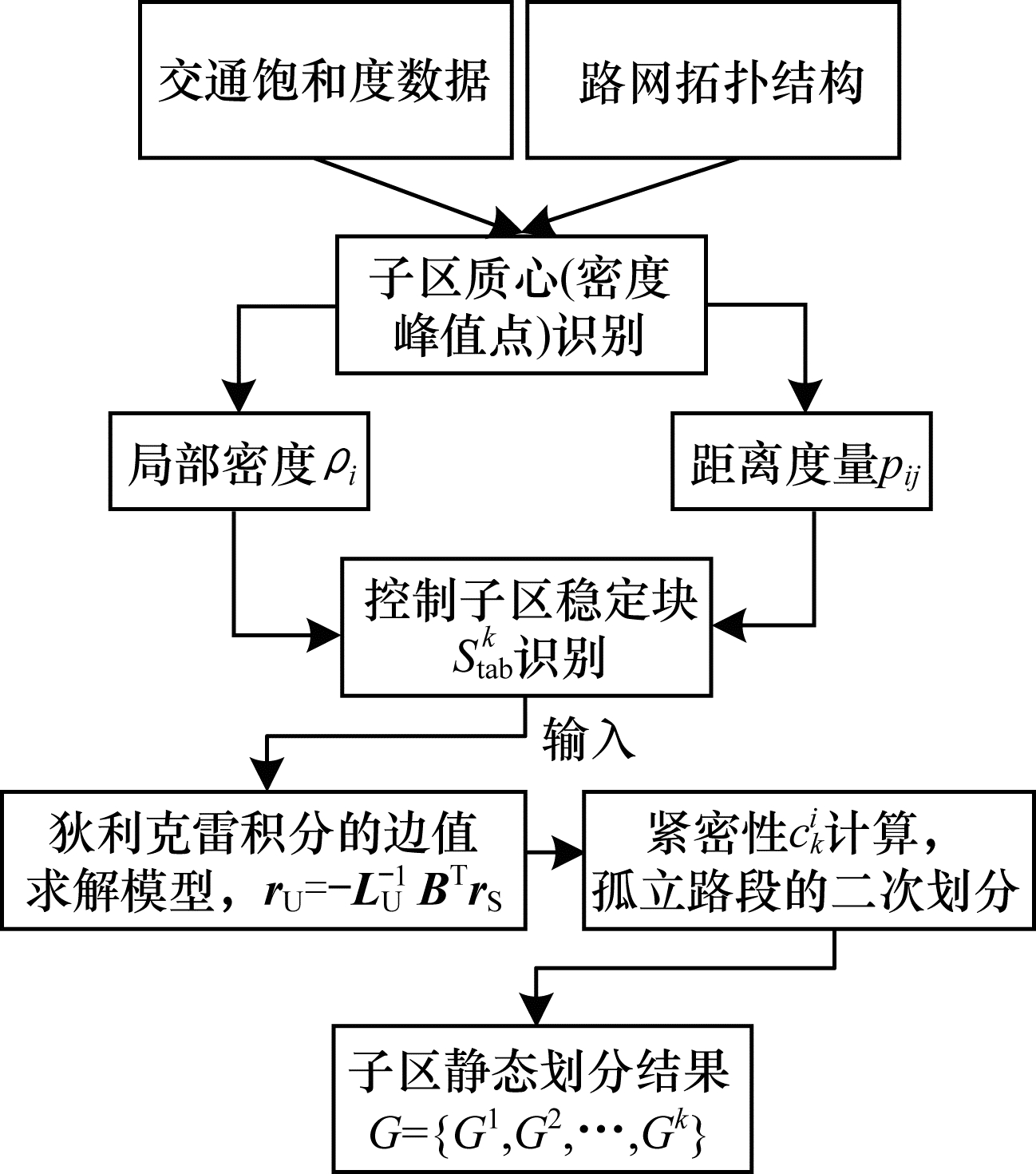本节基于密度峰值理论, 重新定义了局部密度概念, 用于自动识别控制子区的稳定块, 同时运用狄利克雷问题的求解模型实现控制子区的划分。子区划分流程如图 1所示。