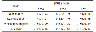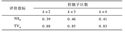 由表 2可见, 在3种分区模式下, 本文算法相较其他算法的NSk与TVn值均最小, 即控制子区的匀质性最高。其中, 2分区时本文算法相较密度峰值算法的NSk、TVn分别降低22%和11%, 体现了算法的有效性。