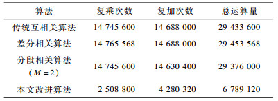 只处理5 ms半帧接收数据, 各算法的具体运算量如表 1所示, 经计算可以得到, 本文改进算法的总运算量只有传统分段相关算法运算量的约23.1%。结果表明, 本文改进算法能有效降低计算复杂度, 缩短PSS定时同步时间, 实现快速查找SSB。