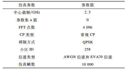 本文搭建5G系统PSS定时同步仿真模型, 对传统互相关算法、差分相关算法、分段相关算法和本文改进算法的性能进行分析比较, 仿真环境设置如表 2所示。