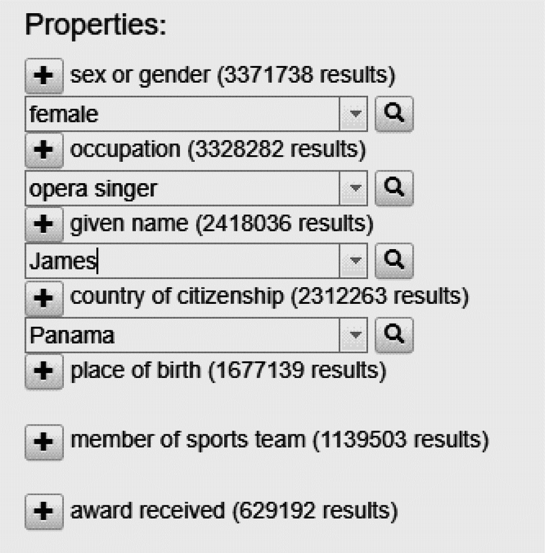 文献[38]提出了基于过滤的刻面浏览查询系统Grafa, 通过预先查询并存储下一步查询结果, 将结果不为空的关系或属性以选项的形式供用户进行选择。如图 9所示, 当用户以people类型作为查询起点时, Grafa提供了多个属性, 例如性别、职业、城市等, 用户可以通过下拉选项框对people类型的查询结果进行过滤, 以找到符合查询意图的结果。基于过滤的查询方法通常以实体或类型作为查询的起点, 适用于星型查询模式[37]。