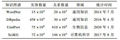 下载CSV 表 1 部分知识图谱数据规模统计 Table 1 Statistics of partial knowledge graph data scale |