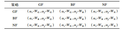 不同策略组合形成的效益值构成博弈策略(如表 1所示), 说明如下: