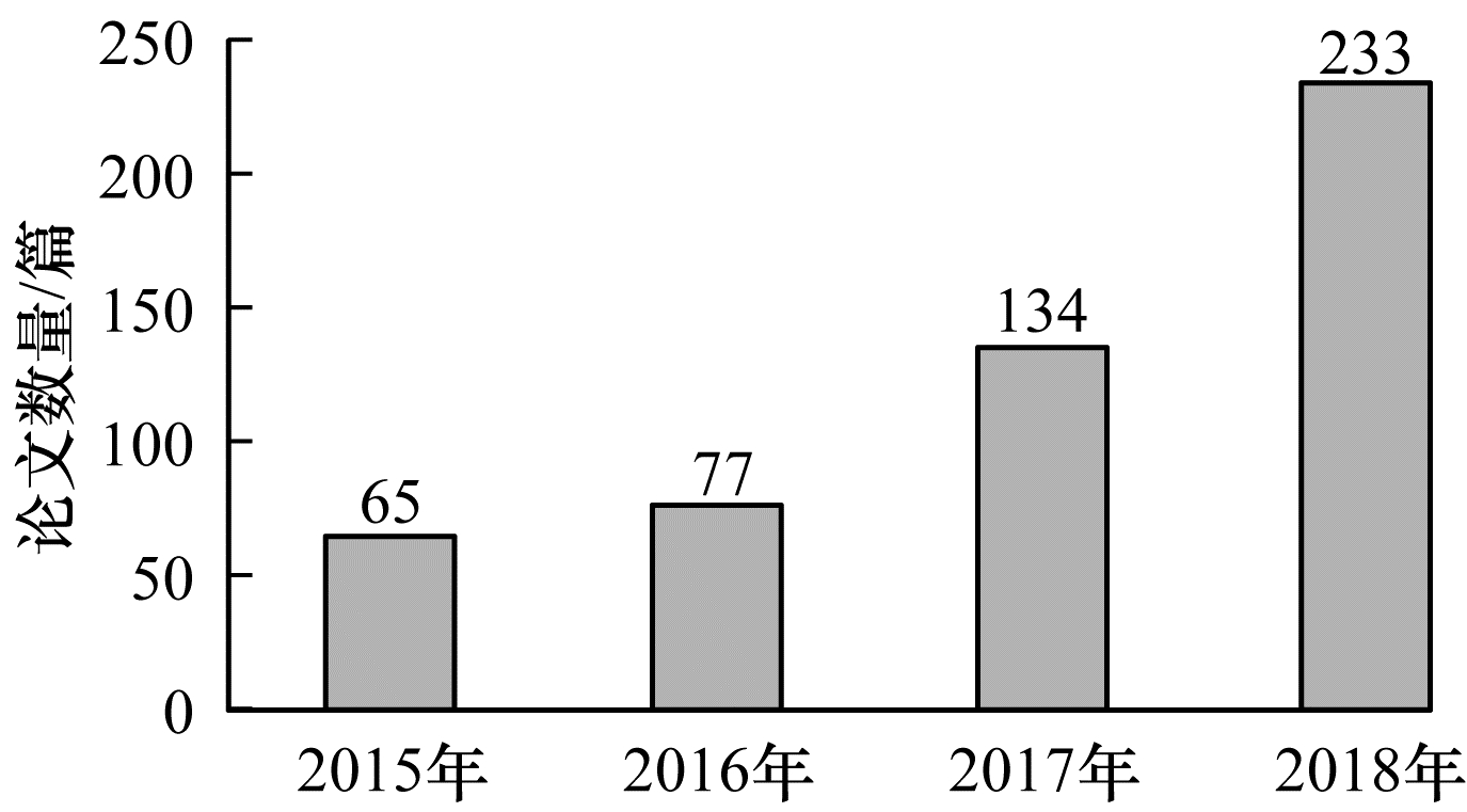 此外, 随着对可解释深度神经网络研究的深入, 出现了大量研究成果, 如以“Interpretable deep neural networks”“Interpretable deep learning” “Interpretable Machine Learning”“Explainable Artificial Intelligence”为主题词在Web of Science核心合集(WBSCI)中检索到的SCI文章数逐年增加, 仅在短短的4年时间内, 论文数量就从2015年的65篇增加到2018年的233篇, 如图 1所示。