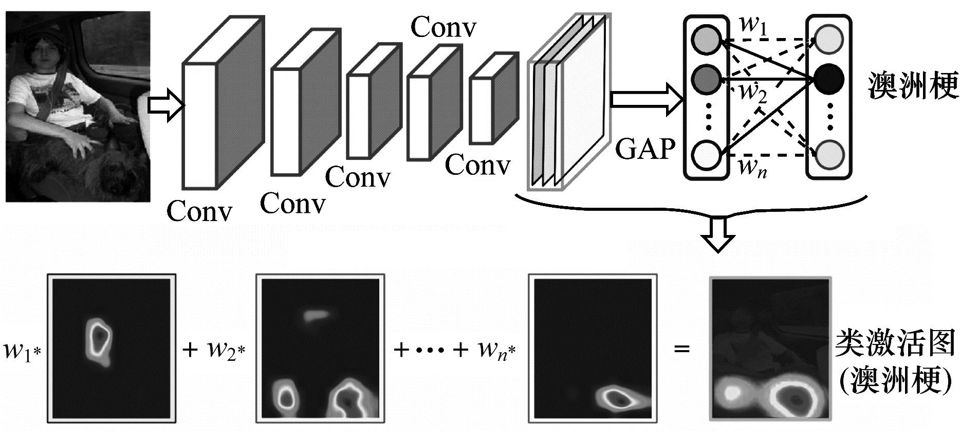 | 图 2 类激活映射方法示意图 Fig. 2 Schematic diagram of class activation mapping method | |