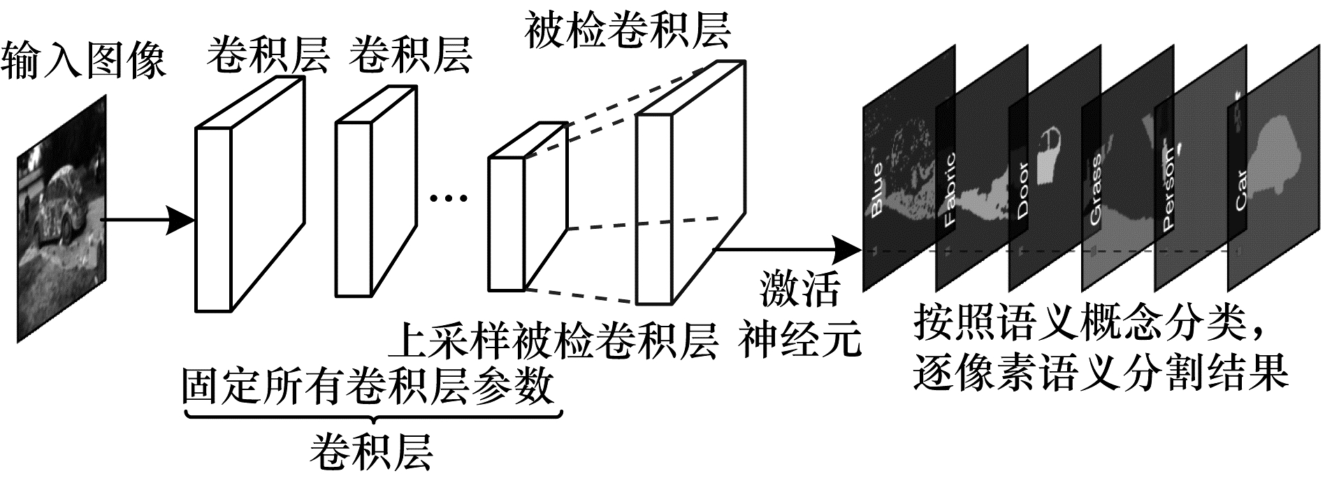 | 图 3 网络剖析方法语义分割示意图 Fig. 3 Schematic diagram of semantic segmentation in network dissection method | |