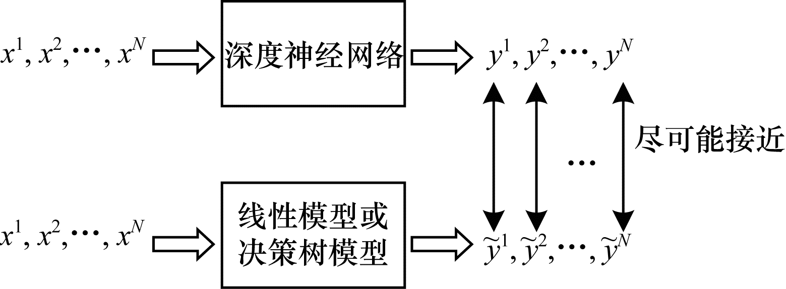 | 图 6 使用可解释模型模仿深度神经网络行为示意图 Fig. 6 Schematic diagram of imitating deep neural networks behavior using interpretable models | |